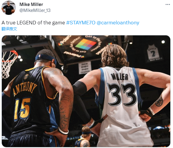 前NBA球员迈克-米勒更推道:“卡梅隆-安东尼,一个真正的比赛传奇。