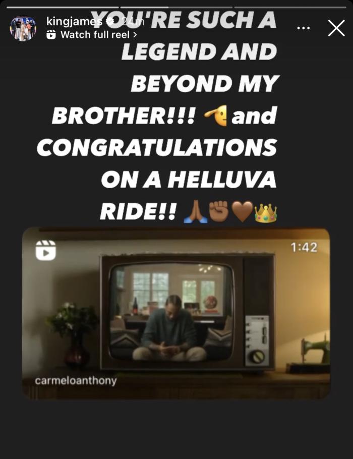 詹姆斯更新INS送上祝福:你是多么伟大的一个传奇,对我而言不仅仅是兄弟!!!祝贺你拥有如此出色的一段旅程。