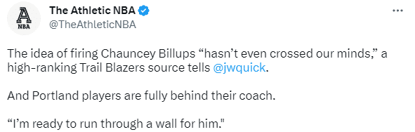 曝开拓者不会解雇主帅!比卢普斯获球员力挺 格兰特:我很想为他效力