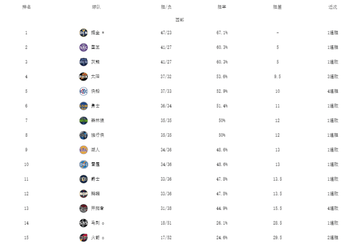 从这点就可以看出西部的竞争有多么激烈,对于卡位、附加赛名次、直通季后赛名额的争夺堪称白热化,尤其是在常规赛只剩下十几轮情况下,每一场比赛的胜负都会让西部的格局有变动。