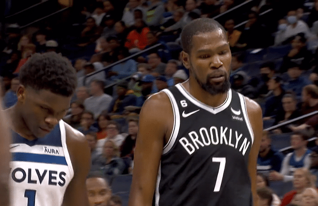 末节杜兰特和欧文继续出战,可森林狼已经换上纯替补,纳什垃圾时间狠用杜欧这操作真是令人费解,第四节还剩4分36秒,杜欧终于下场休息。