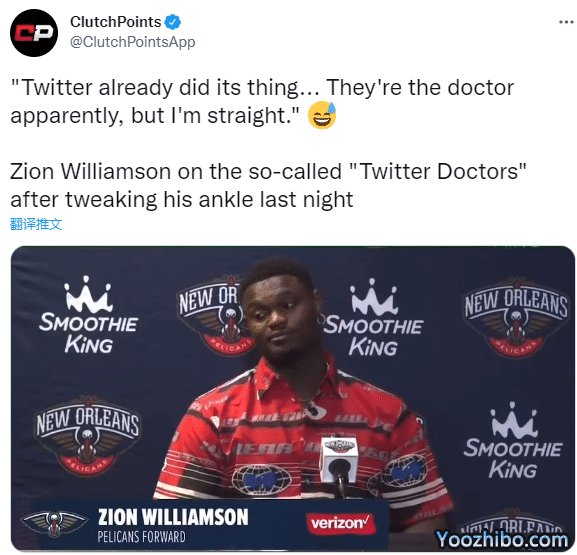锡安因伤退赛引发巨大热议,对于外界的言论,锡安开玩笑表示:推特上已经出检查结果了,显然他们都是医生,但我的脚踝很好,没问题。