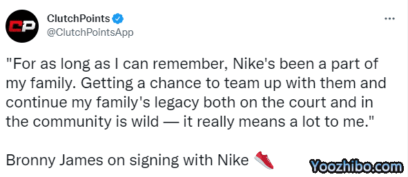 对于和耐克签下代言合同,布朗尼发表声明:从我记事起,耐克就一直是我家庭的一部分。有机会与他们合作,在球场上和社区中继续我的家庭遗产,这对我来说真的很重要。