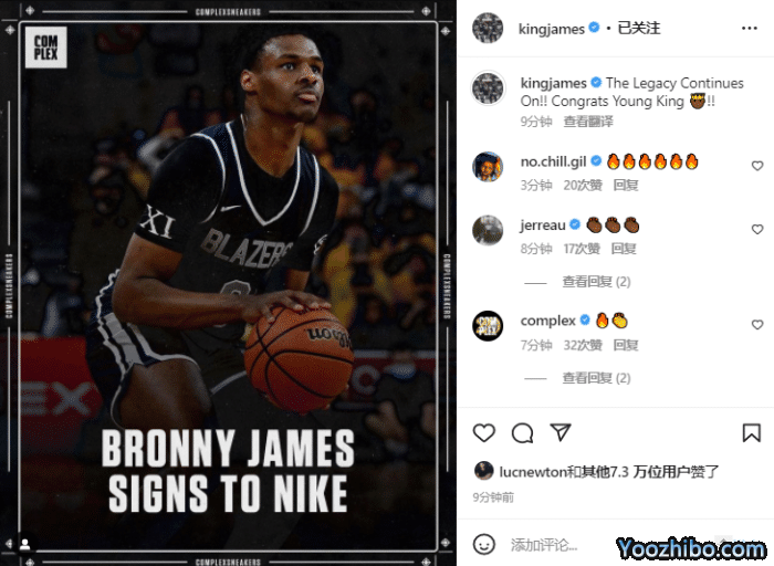此前布朗尼才度过他的18岁生日,詹姆斯为他举办豪华生日派对,詹皇父子都在派对上尽情摇摆,现场氛围太嗨了,现在布朗尼又获得一份成年礼——与耐克签下代言合同,NIL合同是指Nike将拥有布朗尼的Names(名字)、Images(形象)和Likenesses(肖像)的使用权。