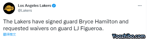 洛杉矶湖人队官方宣布再次调整阵容,球队正式与后卫布莱斯-汉密尔顿签下一份训练营合同,并且正式裁掉后卫LJ-菲格罗亚。