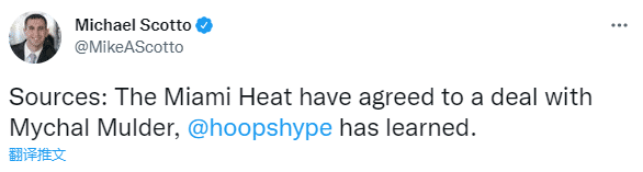 据名记Michael Scotto报道,热火与后卫迈克尔-穆尔德达成签约协议;穆尔德今年28岁,身高1米90体重88公斤,21-22赛季,他为魔术和热火效力,共出战17场,场均可以得到4.1分1.4篮板。