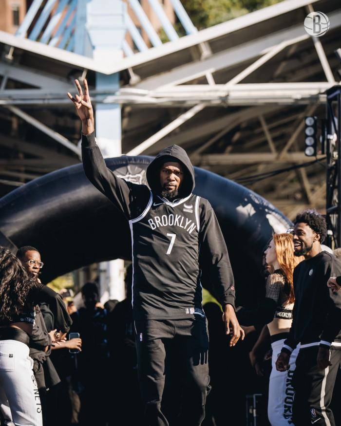 篮网公开训练曝光:杜兰特尬舞欧文获欢呼纳什遭狂嘘 8000门票创纪录