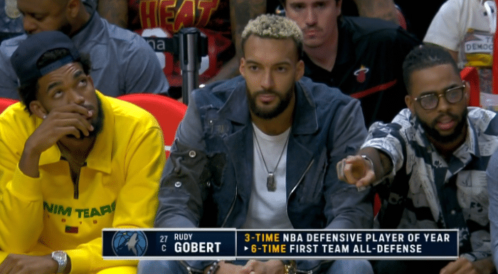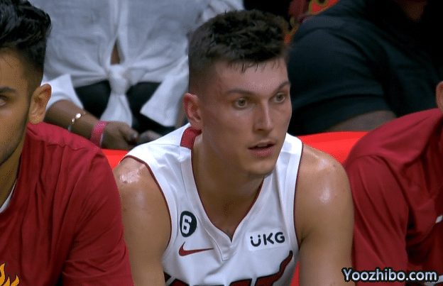 下半场,希罗第三节开场连续命中三分,对飚森林狼状元郎爱德华兹,不过8分11秒,希罗遭遇惊魂一幕,希罗与麦克丹尼尔斯膝盖碰膝盖,希罗捂着膝盖痛苦倒地,表情痛苦,之后一瘸一拐走回替补席,所幸他的膝盖无大碍,继续留在场上比赛,第三节还剩不到2分钟,热火换下希罗、阿德巴约等主力,末节他们都不在上场。