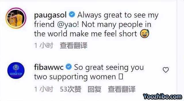 来源:JRS直播10-03 16:06JRS直播10月03日讯 ,前NBA球星大加索尔更新社媒,晒出了一张自己和姚明在女篮世界杯上的合影。合影中,2米13的大加站在2米26的姚明身边。大加配文写道:“见到我的朋友姚明总是很高兴!世界上没有几个人能让我感觉自己矮小。” FIBA女篮世界杯官媒留言道:“很高兴看到你们对女性的支持。”