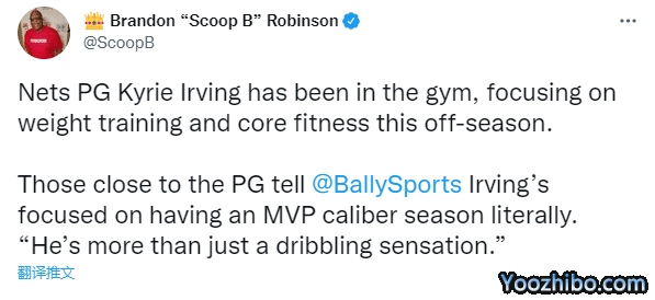 美记Brandon Robinson晒出欧文赤膊训练照,并且透露:与欧文关系密切的消息人士透露,欧文休赛期一直泡在健身房,专注于力量和核心的训练,他专注于打出MVP级别的赛季表现——“他不仅仅想做个控球高手”。