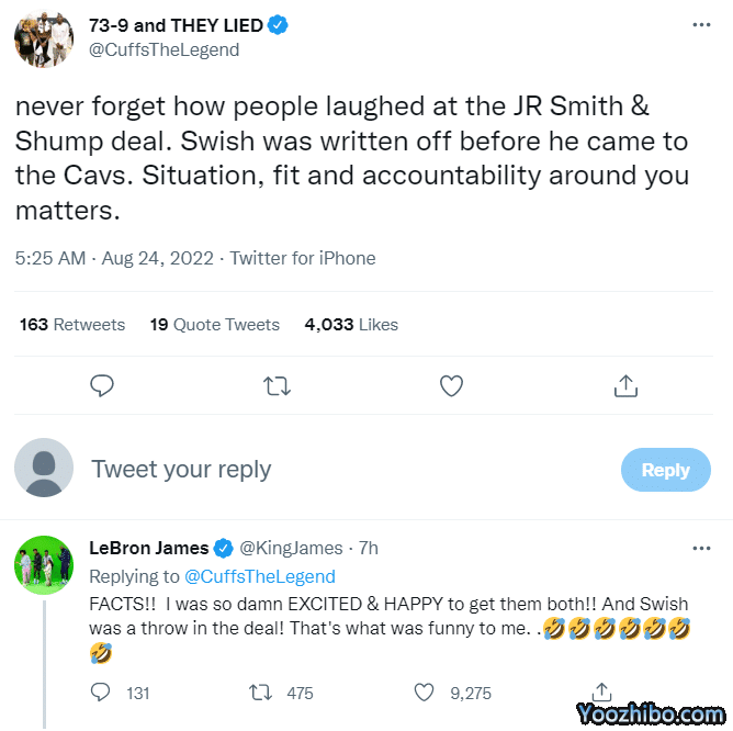 面对网友的质疑,詹姆斯的好友第一时间发推为湖人站台,他表示:当初骑士队在引进香波特和JR史密斯的时候,JR也不被大家看好,但是他来到骑士后却打出了让人意想不到的效果,球员的表现讲究天时地利人和。詹姆斯本人转发了这条内容,并且对好友的观点表示认同,不得不说,詹姆斯的态度真的是让人耐人寻味,从支持好友的角度来看,看起来似乎有点希望施罗德回归。