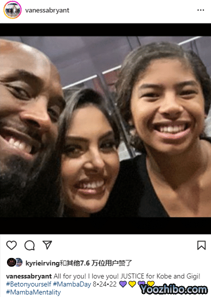 湖人勇士庆祝科比日!杜兰特欧文等球星发文怀念 瓦妮莎胜诉后再发声