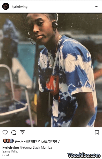 欧文晒科比年轻时候的照片,配文写道:年轻的黑曼巴,同样的杀手,8·24;勇士球星格林和汤普森晒昔日合影怀念科比。