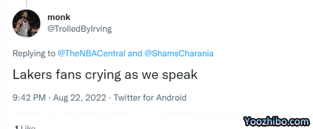此前,欧文选择执行2022-23赛季3700万美元的球员选项,并有报道称,无论杜兰特离开还是留队,欧文都想留在篮网打完自己的合同年。如今,篮网确定留下欧文,有人调侃一直在努力得到欧文的湖人:湖人球迷要哭了。