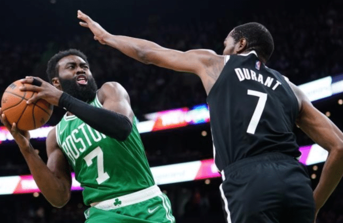 今年休赛期,杜兰特申请离队并且把热火和太阳列为心仪下家,联盟很多球队都打电话询价,不过由于篮网要价极高,导致很多球队早早退出杜兰特争夺战;美记曾报道凯尔特人报价杰伦-布朗、怀特和一个选秀权,试图3换1引援杜兰特遭篮网拒绝。