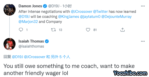 詹姆斯曾和小托马斯在骑士和湖人当过队友,不过目前小托马斯仍旧是一名自由球员,还没有和任何球队签约。