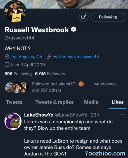 威少点赞争议言论:湖人需要与詹姆斯续约 老板却坦言乔丹历史最佳