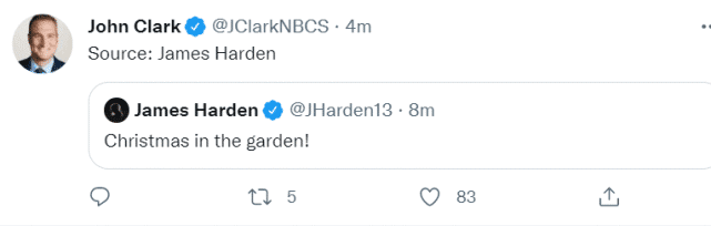 来源:JRS直播08-15 15:40JRS直播08月15日讯 ,哈登更新社媒,写道:“圣诞在花园”。NBA通常提到garden,就是指纽约尼克斯的主场麦迪逊广场花园。费城名记John Clark调侃,哈登成了消息源。此前已经曝光的三场年终大战,分别是独行侠主场对阵湖人、勇士主场对阵灰熊、掘金主场对太阳,如今又多了一场:尼克斯主场对76人。