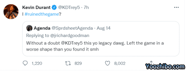 杜兰特回应:“我真的毁了这个联盟吗?”