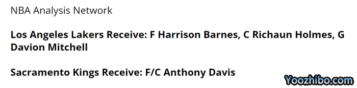 来源:JRS直播08-14 19:44JRS直播08月14日讯 自从在泡泡园区拿到总冠军后,湖人在过去两个赛季的表现,只能用糟糕来形容。20-21赛季季后赛首轮被太阳轻松淘汰,而上赛季甚至连附加赛都进不去。自由市场开启后,湖人放弃了原本队内的诸多老将,选择大规模签下年轻人,比如托马斯布莱恩特、特洛伊布朗、朗尼沃克等人,阵容年轻化是湖人在新赛季所做的另外一种尝试。此外威少的交易迟迟没有进展,湖人最多只愿拿出1首轮+1次轮,看起来想送走威少并不容易。在这种情况下,美记邓文尼透露,湖人内部人士想要衡量戴维斯的市场交易价值。对此,美媒《NBA Analysis》专栏记者詹姆斯皮尔西撰文,列出一组交易方案,实话实说,对交易双方包括戴维斯都有一定的好处。