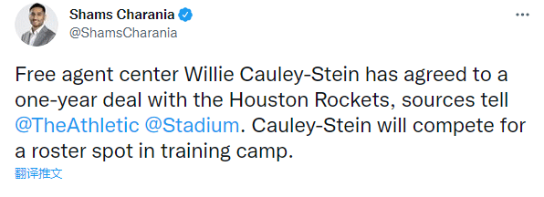 目前火箭队大名单已经有20名球员,他们需要裁人或者交易一名球员才有空缺签下考利-斯坦;火箭内线有很多选择,再加上火箭重点培养年轻人,考利-斯坦很可能在训练营之后再次失业。