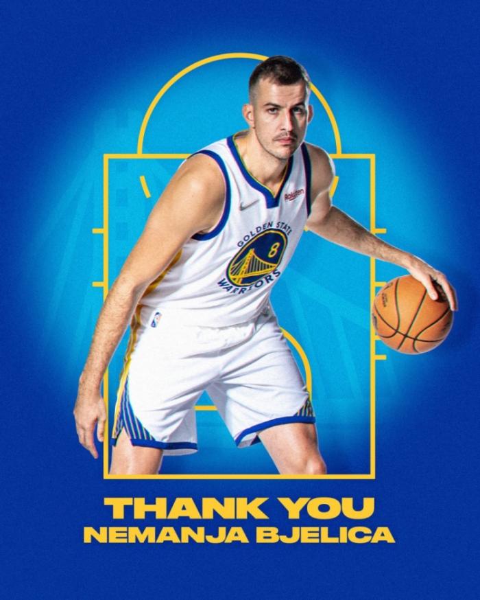 勇士官方晒照,正式告别别利察,发推致谢:一年前的今天你来到了湾区,一年后你以NBA冠军的身份回到费内巴切。感谢你的一切,@别利察!