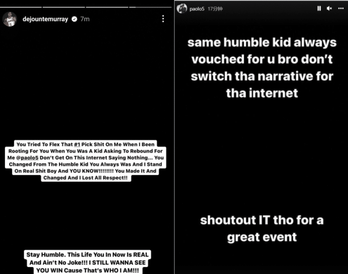 穆雷再次发声,喊话班凯罗:我曾经是那么支持你班切罗,不要在网络上说些有的没的...你变了,你不再是那个谦逊的小男孩,不再是那个我曾经支持的孩子了,我对你也不再有尊重了!