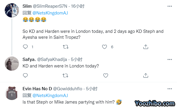 杜兰特现身夜店狂欢发生在2天前,只是今天才曝光而已;有球迷表示:杜兰特和哈登今天都在伦敦,2天前杜兰特、库里和阿耶莎都在圣特罗佩吗?还有球迷表示:库里或者迈克-詹姆斯和他一起参加派对吗?更有球迷直言:在我看来,他太像库里了。