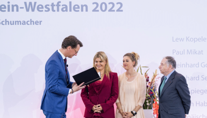 迈克尔-舒马赫此前被授予北莱茵-威斯特伐利亚州奖,这是在该地区出生的人,所能获得的最高奖项,可见舒马赫的地位有多高了。而舒马赫的妻子科琳娜、女儿吉娜-玛利亚代替舒马赫领奖。