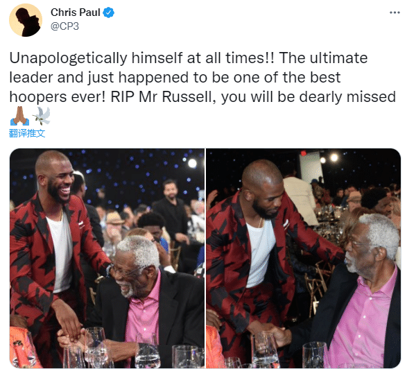 太阳球星保罗:他总是无时无刻不在!他是终极领袖,也是有史以来最好的篮球运动员之一!拉塞尔先生,安息吧,我们都会非常想念你的。