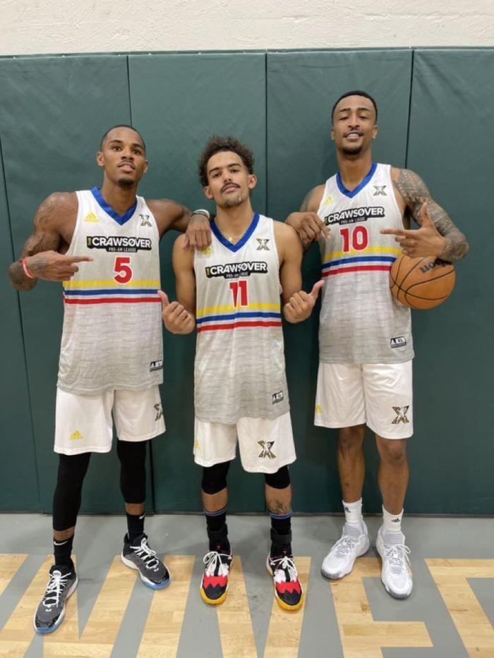 特雷杨、穆雷和科林斯联手出战The Crawsover联赛,第一节30-33落后超音速队;第二节扭转局面,不过半场65-60仅领先5分;老鹰三巨头打嗨了,特雷-杨助攻穆雷轻松空接,穆雷打板助攻科林斯砸扣,特雷-杨不讲理3+1,穆雷反击暴扣,三人之间的连线十分精彩,不过这比赛的防守强度很低,就相当于是训练赛。