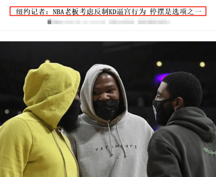 而3个月后的22-23赛季开打,大家最期待什么样的“剧本”呢?然而,就在近日,NBA联盟传来一个不利的消息,可能会再次停摆,并不是空穴来风。据《纽约邮报》Brian Lewis报道,杜兰特“逼宫”篮网队的行为,让整个联盟的老板震惊,虽然大家都在看热闹,但考虑到球星申请交易已经成为常态,30支球队的老板考虑对球员进行反制,停摆就是选项之一。