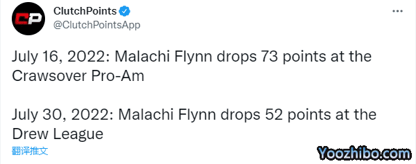 今日猛龙悍将马拉奇-弗林参加德鲁联赛,全场拿到52分6篮板2抢断,一个人投进8记三分球;值得一提的是,大概两周前,马拉奇-弗林在The Crawsover联赛爆砍73分,就在这一天,詹姆斯联手德罗赞参加德鲁联赛,老詹轰下42分16篮板引热议。