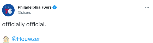 哈登签约后表忠心并且豪言夺冠,大胡子表示:费城就是我想待的地方,我认为我们能实现夺冠的目标;自从我来到76人的第一天起,球队和球迷们让我在费城有了家的感觉。我很兴奋能在上赛季的基础上与球队再创辉煌,我等不及想要和队友们一起踏上战场,开启这一段的旅途了。