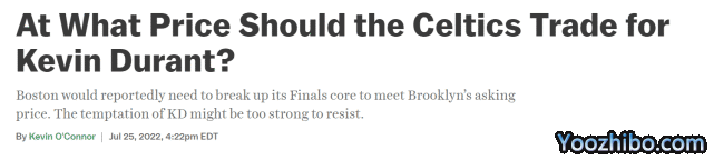 O'Connor表示,如果他是凯尔特人,他会愿意为杜兰特放弃布朗,即便布朗比杜兰特年轻8岁,而且依然有上升空间。在他看来,布朗的交易价值不够高,因为他有可能在2024年成为自由球员,这也是篮网顾忌到的,所以他们要求得到斯马特和更多的首轮签。