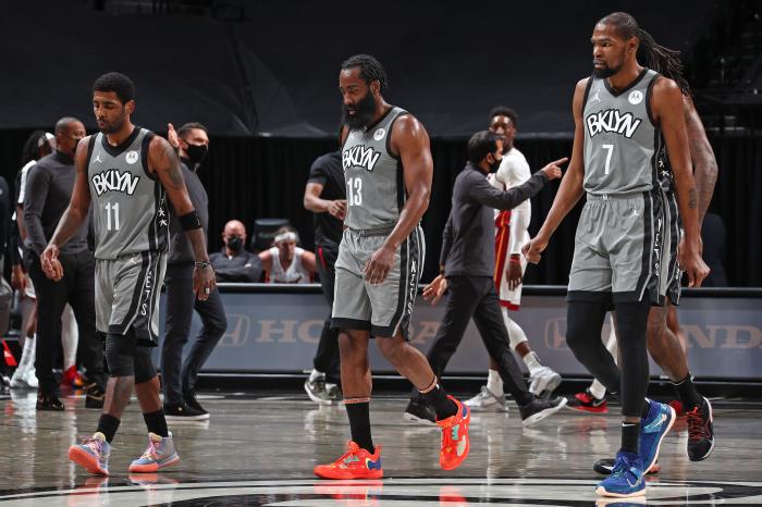 在没有杜兰特、欧文的20场比赛中,哈登独自带队取得了17胜3负的好成绩。并率领篮网以东部第二的好成绩打进了季后赛。因为长时间超负荷使用以及年龄的增长,哈登在对阵火箭的比赛中,出现了腿筋拉伤的情况。这次意外的受伤,也让哈登的职业生涯轨迹发生了改变。