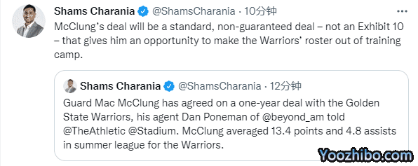 来源:JRS直播07-21 10:14JRS直播07月21日讯 ,卫冕冠军勇士再签一人,据名记shams报道,勇士和湖人旧将迈克-朗签下一年无保证合同,并不是Exhibit 10的合同,今夏麦克-朗代表勇士出战夏季联赛,场均拿到13.4分4.8助攻,凭借出色的表现赢得一份正式合同,新赛季他仍旧需要在训练营证明自己,冲击保障合同。