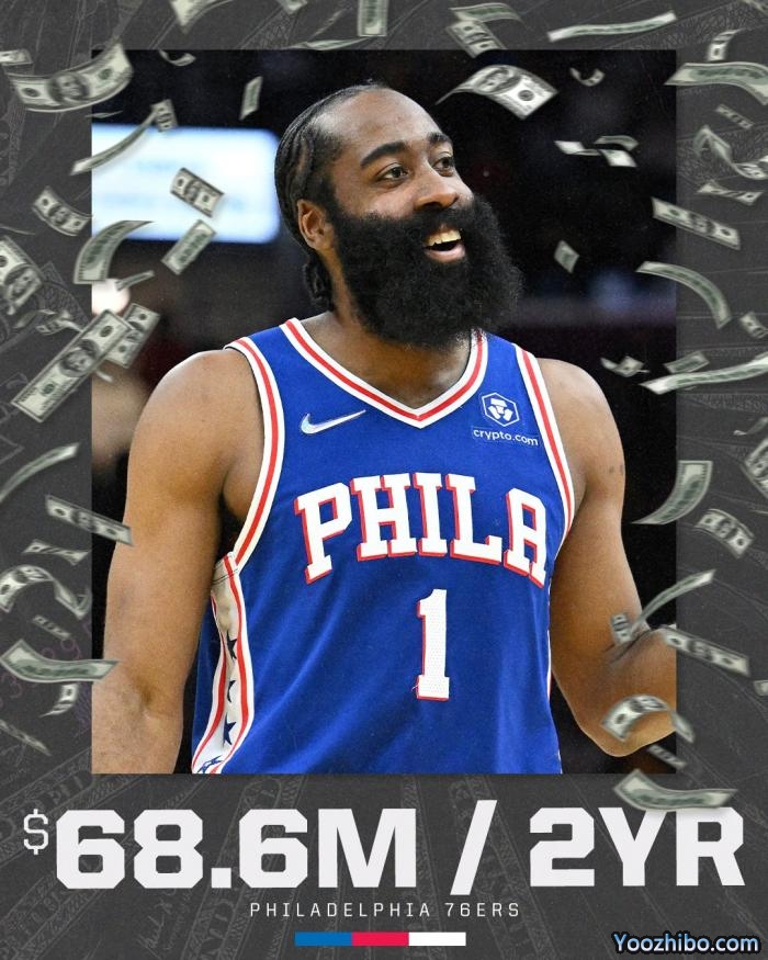 揭秘哈登2年合同细节!拥有交易否决权 降薪助76人获两大冲冠帮手