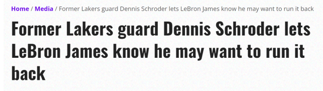 美媒Lakers Daily转发了施罗德的社媒言论,并点评道:“施罗德现在是一名自由球员,他似乎又一次没有收获球队的兴趣。尽管他似乎有重新加入湖人的想法,但不清楚湖人是否有兴趣再次签下他。”湖人现在已经用掉了中产,只能底薪签约。