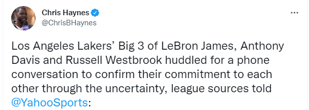 虽然威少和湖人未来的不确定性仍然存在,但消息人士透露,这次谈话是为了确保三人在共同追求总冠军的过程中保持一致。