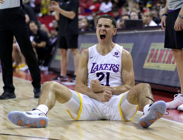 在今年夏季联赛,斯威德是湖人核心首发之一,他用自己的实际表现证明自己是一位优质的射手,8战73投38中,场均约13分,投篮命中率52%,三分球53投28中,三分命中率高达52.8%,场均投进3.5记三分,3次单场至少命中5记三分;斯威德是今年落选秀,不得不说湖人捡到宝了。