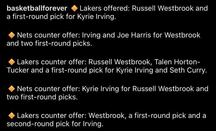 美媒Basketball Forever梳理了湖人和篮网谈判的全过程: