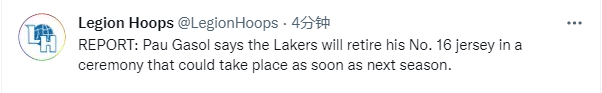 加索尔宣布!湖人将在下赛季退役他的16号球衣 永远紧挨科比太感人