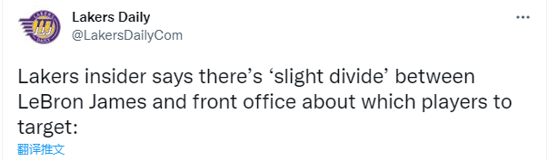据湖人记者Jovan Buha报道,詹姆斯和欧文想在湖人重聚,为此詹姆斯给湖人管理层施加压力,但是在球队引援这一块,詹姆斯和湖人高管存在分歧,詹姆斯想要交易得到欧文,而湖人管理层的一些人更想从步行者换来希尔德和特纳。