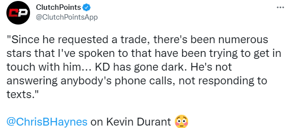 杜兰特拒接电话玩消失!申请离队后真实反应曝光 交易停滞或被迫留队