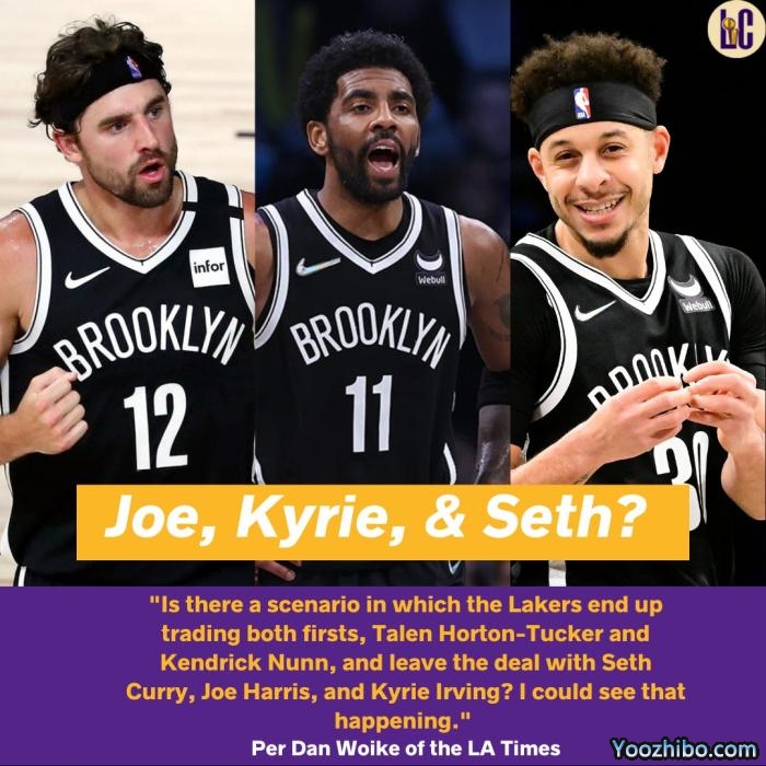 对于湖人想要引援欧文,《洛杉矶时报》湖人记者Dan Woike为湖人支招,他认为湖人可以把威少、霍顿-塔克、纳恩和两个首轮权送走,从篮网得到欧文、赛斯-库里和欧文,并且直言这笔方案能促成交易。