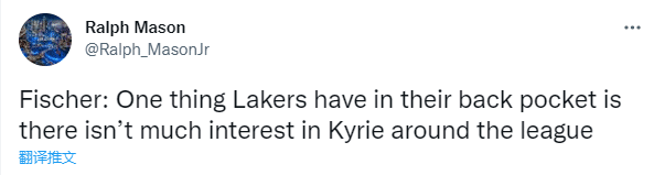 据美媒《露天看台》记者费舍尔报道,对于湖人有利于得到欧文的一件事是全联盟其他球队都对他没有太大的兴趣。
