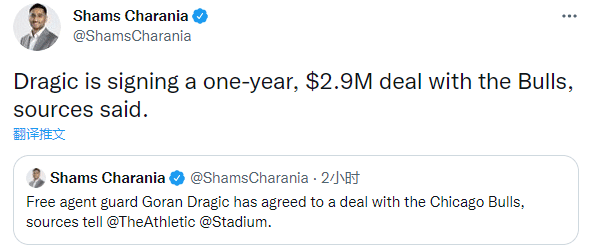此前布鲁斯-布朗2年1300万美元加盟掘金,庄神2年660万美元加盟公牛,德拉季奇也选择了芝加哥。