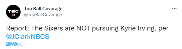此前Shams在节目中表示除了湖人之外,76人和独行侠也有意追求欧文,如今76人记者跟进报道,76人方面并没有追求欧文;另外独行侠也对欧文没什么兴趣,仅仅只是例行询价而已。
