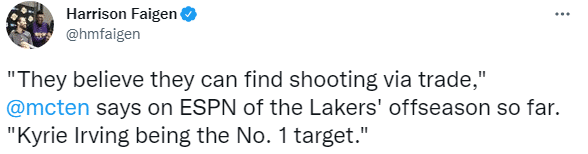 杜兰特想要离队,欧文可能已经打完了篮网生涯最后一场比赛,目前湖人把欧文列为头号引援目标;不得不说,疯狂的休赛期来了,新赛季杜兰特可能为太阳效力,欧文可能为湖人效力,杜欧搅乱了整个联盟。